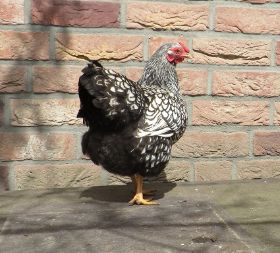 Zwerg-Wyandotten-Henne in weiß-schwarz-gesäumt